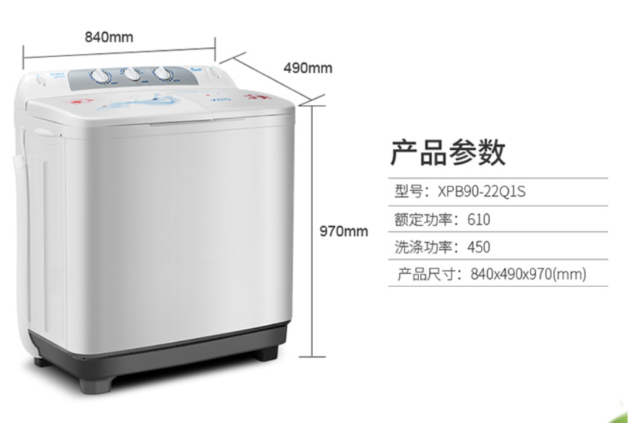 • 商品名称:美菱(MELING) 9公斤大容量双桶洗衣机 省水省电 下排水 小型白色家用 XPB90-22Q1S