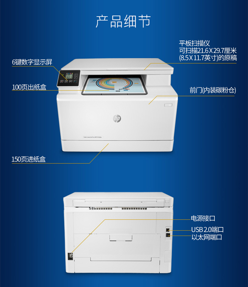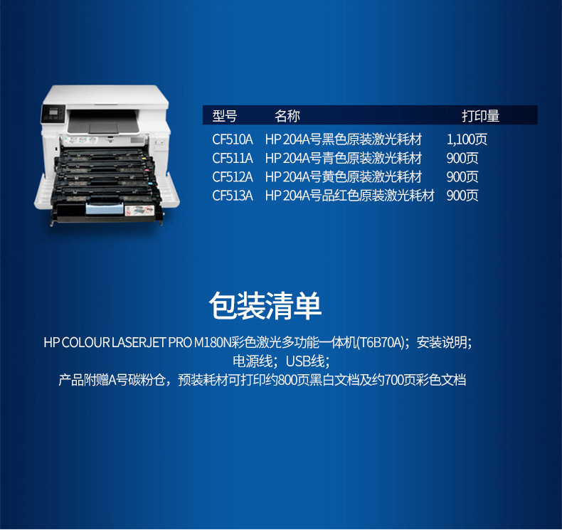 • 商品名称:HP惠普M180n彩色激光多功能打印机一体机复印件扫描A4商务商用网络办公室商务三合一