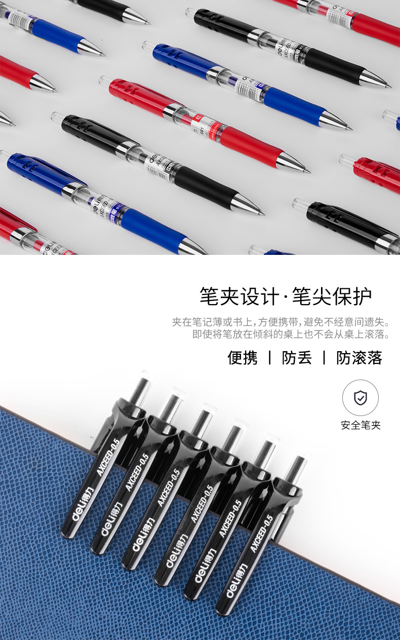• 商品名称:得力蓝黑色单支欧标文具按动中性笔0.5子弹头办公签字碳素笔学生0.7水笔