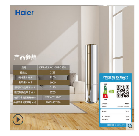 • 商品名称:Haier/海尔 KFR-72LW/10UBC12U1智能3匹定频圆柱柜机空调二级能效