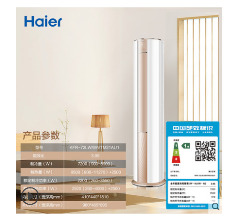 • 商品名称:Haier/海尔 KFR-72LW/09VTM21AU1 3匹一级能效立式家用空调