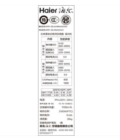 • 商品名称:Haier/海尔 KFR-50LW/18RAA21AU1变频柜式空调