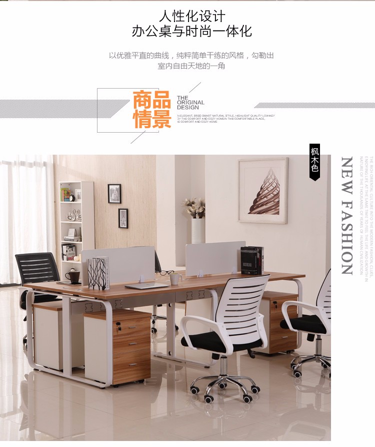 商品名称: 办公家具现代简约四人位办公桌时尚双人位挡板工作位六人位电脑桌职员桌椅组合卡座员工桌子 枫木色 1.2*0.6米(单人位无柜椅)