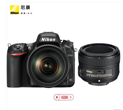尼康(Nikon)D750 单反双镜头套机 (AF-S 24-120mm f/4G ED VR镜头 + AF 50mm f/1.8G 镜头)黑色