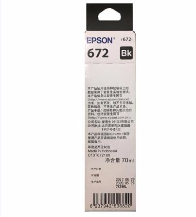 爱普生T6721黑色墨水瓶(适用L220/L310/L313/L211/L360/L380/L455/L385/L485/L565)
