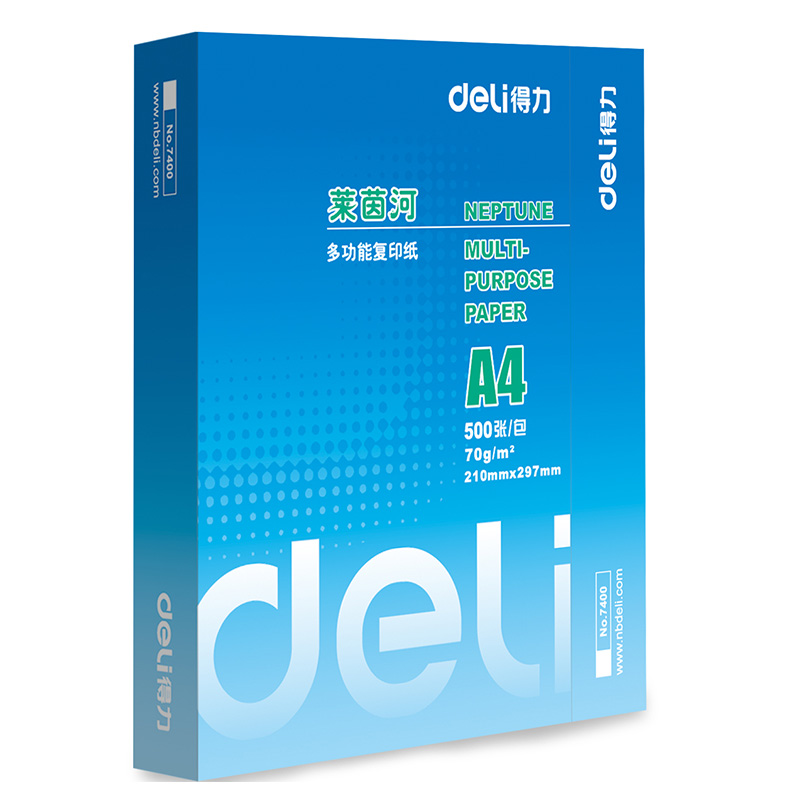 • 商品名称:得力(deli) 7400 A4 莱茵河复印纸 70g 500张/包 单包装